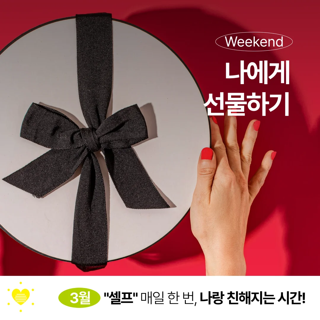 토요일은 ‘나에게 선물하는 날’이에요. 점심값이나 생활용품 이외에 스스로에게 선물을 한 적이 언제인가요? 나에게 선물하기는 스스로를 소중히 여기는 따뜻한 습관이에요. 스스로를 인정하고 보상해주면 삶에 대한 만족감과 동기부여가 높아지고, ‘나는 소중한 사람’이라는 메시지를 스스로에게 전하는 효과도 있답니다. 거창하지 않아도 괜찮아요. 자신에게 주는 작은 선물로 지금보다 더 따뜻한 행복한 일상을 가꿔보세요.